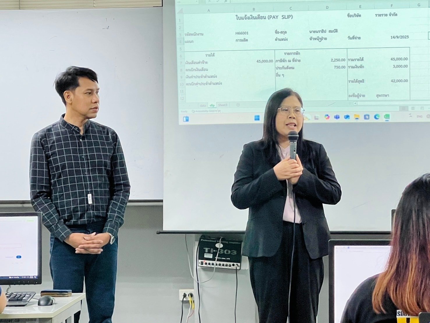วันที่ 14 กันยายน 2568 สาขาวิชาการจัดการทรัพยากรมนุษย์ คณะบริหารธุรกิจ ได้จัดโครงการพัฒนาทักษะด้านเทคโนโลยีวิชาชีพ : การใช้โปรแกรมสำเร็จรูปในการบริหารค่าตอบแทน โดยได้รับเกียรติจาก อาจารย์มาลินี นาคใหญ่ มหาวิทยาลัยราชภัฏนครปฐม เป็นวิทยากรบรรยายให้ความรู้