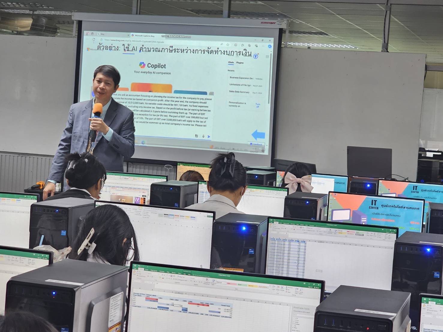 โดยการอบรมครั้งนี้ได้รับเกียรติจาก ดร.ไกรวิทย์ หลีกภัย ผู้เชี่ยวชาญด้านเทคโนโลยีและการบัญชียุคดิจิทัล มาแบ่งปันมุมมองและประสบการณ์เกี่ยวกับการใช้เทคโนโลยี AI เพื่อเพิ่มประสิทธิภาพการทำงานของนักบัญชีในอนาคต