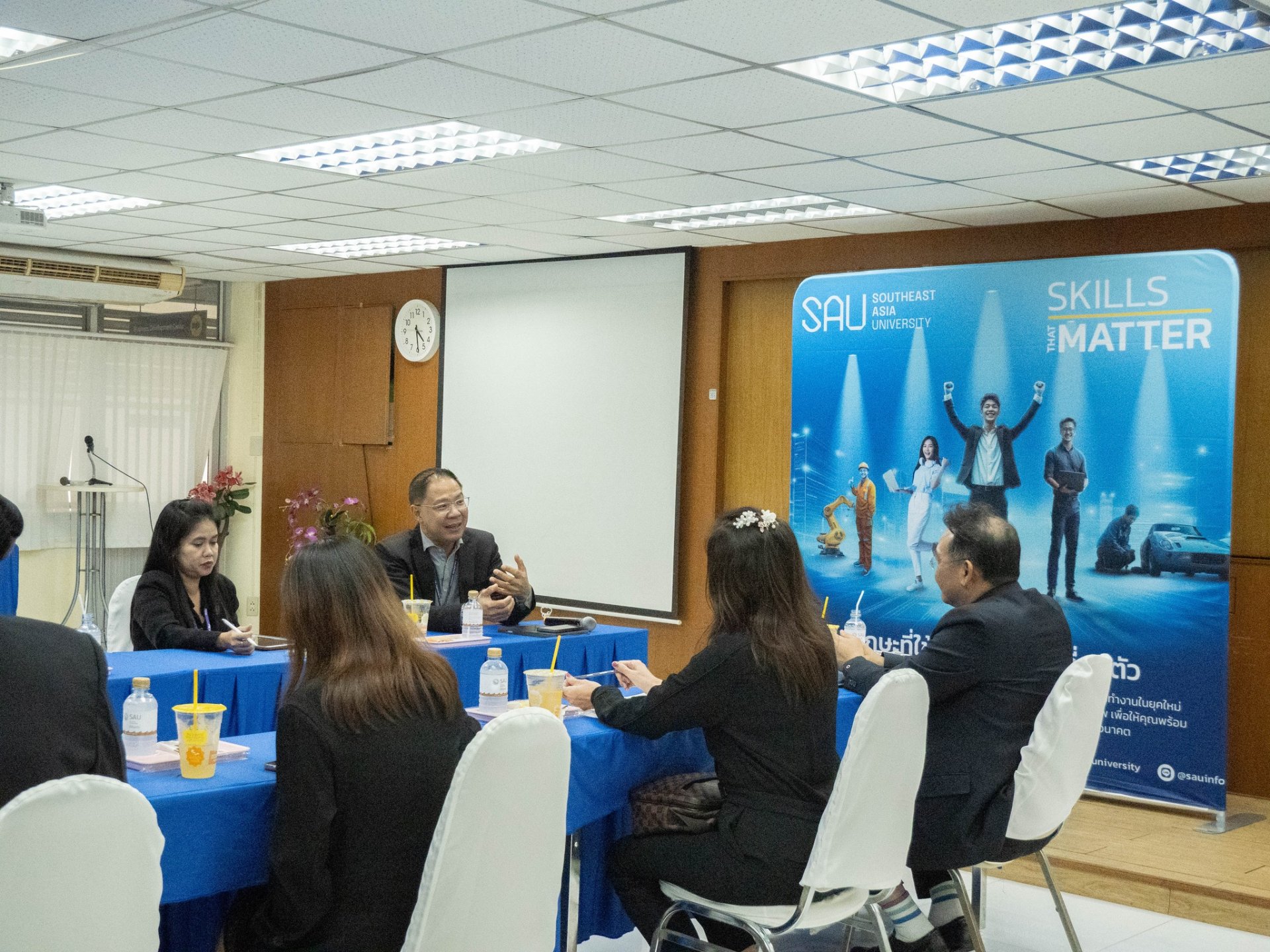 คณะบริหารธุรกิจ มหาวิทยาลัยเอเชียอาคเนย์ โดยอาจารย์ศราวุธ เอี่ยมสอาด ผู้ช่วยอธิการบดี ฝ่ายพัฒนาธุรกิจ / คณบดีคณะบริหารธุรกิจ ได้ให้การต้อนรับคณะผู้บริหารจากวิทยาลัยเทคโนโลโยีการจัดการเพชรเกษม ในโอกาสเข้าร่วมประชุมแลกเปลี่ยนแนวทางการจัดการเรียนการสอน การพัฒนาหลักสูตร และกิจกรรมเสริมสร้างศักยภาพนักศึกษา