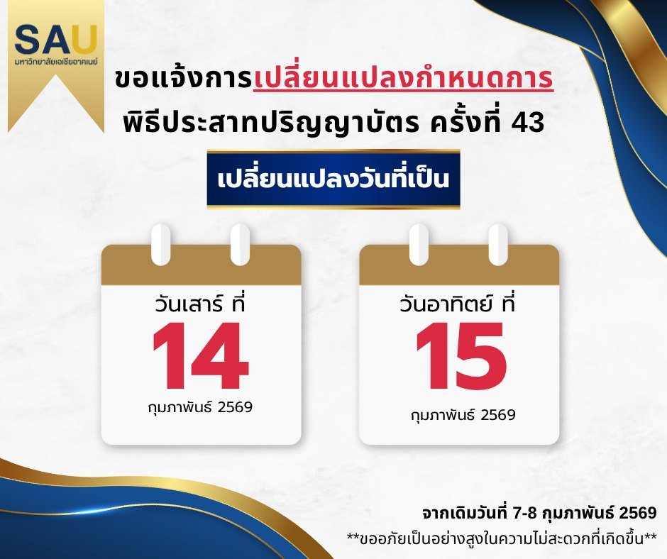 เปลี่ยนแปลงกำหนดการพิธีประสาทปริญญาบัตร ครั้งที่ 43