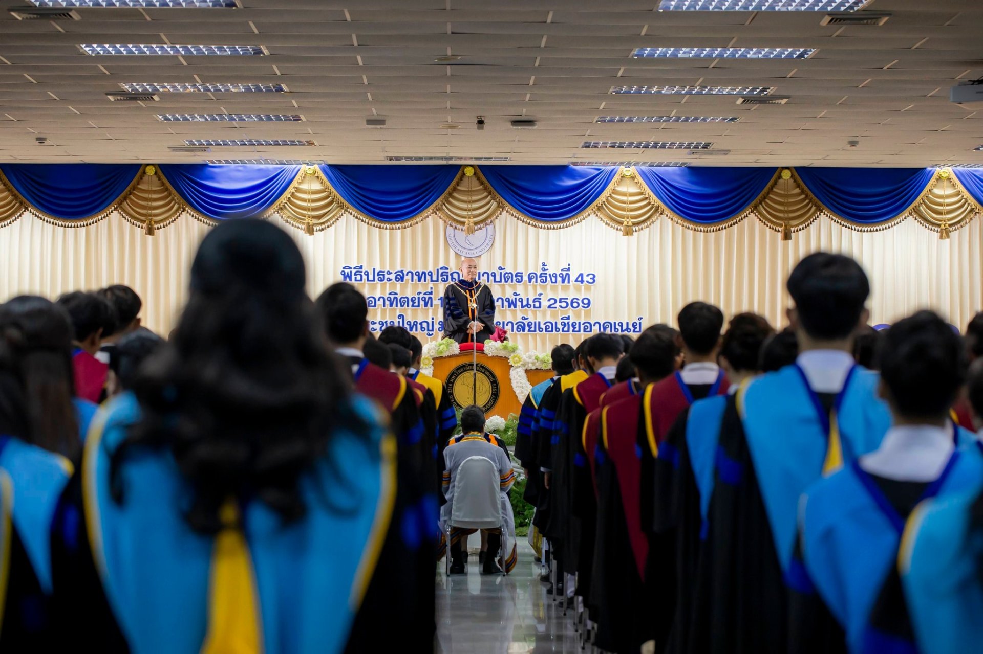 วันอาทิตย์ที่ 15 กุมภาพันธ์ 2569 มหาวิทยาลัยเอเชียอาคเนย์ จัดพิธีประสาทปริญญาบัตร ครั้งที่ 43 โดยได้รับเกียรติจาก ศาสตราจารย์เกียรติคุณ นายแพทย์เกษม วัฒนชัย องคมนตรี เป็นประธานในพิธี